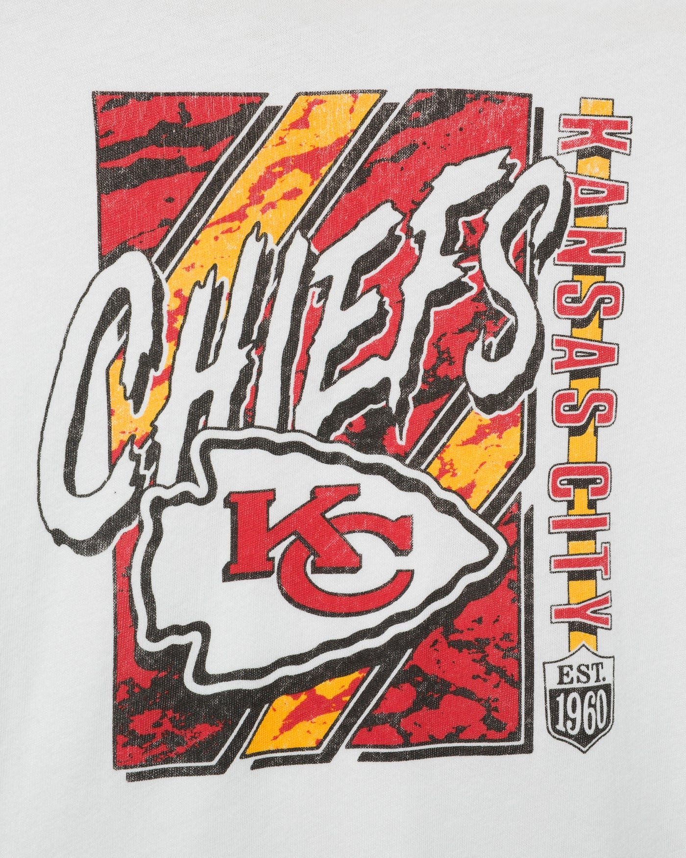 Let your young fan show off bold Chiefs pride with the Kids Kansas City Chiefs Icon Tee! Featuring a dynamic, street art inspired design and the iconic KC logo, this soft white tee brings major energy to any outfit. Perfect for game day or playground domination.