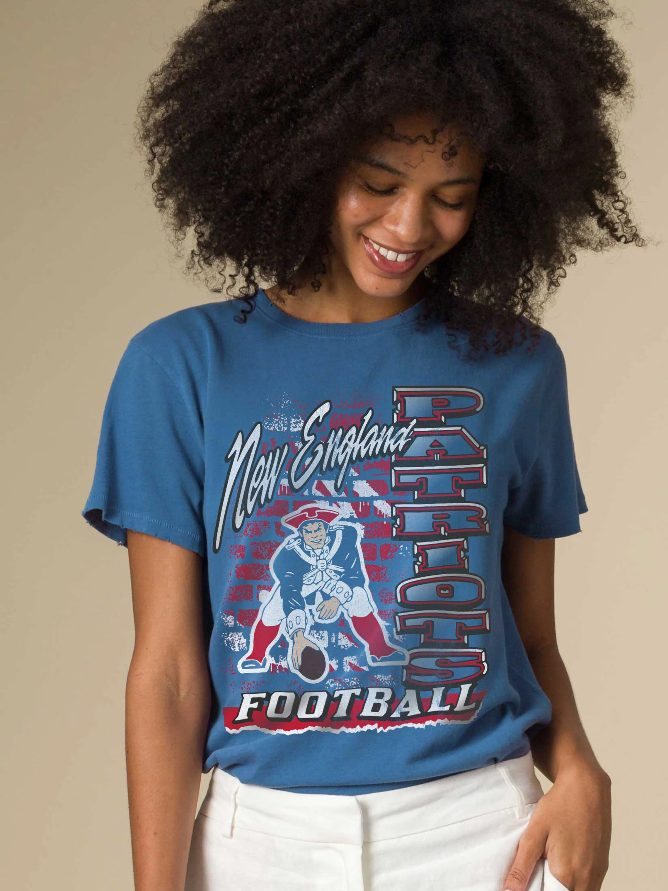 Show your Patriots pride with a bold, vintage twist. This Women’s New England Patriots Brick Tee features throwback graphics with a distressed brick backdrop and classic team colors. Soft, relaxed, and full of retro flair perfect for repping New England on game day or any day. A true fan favorite!